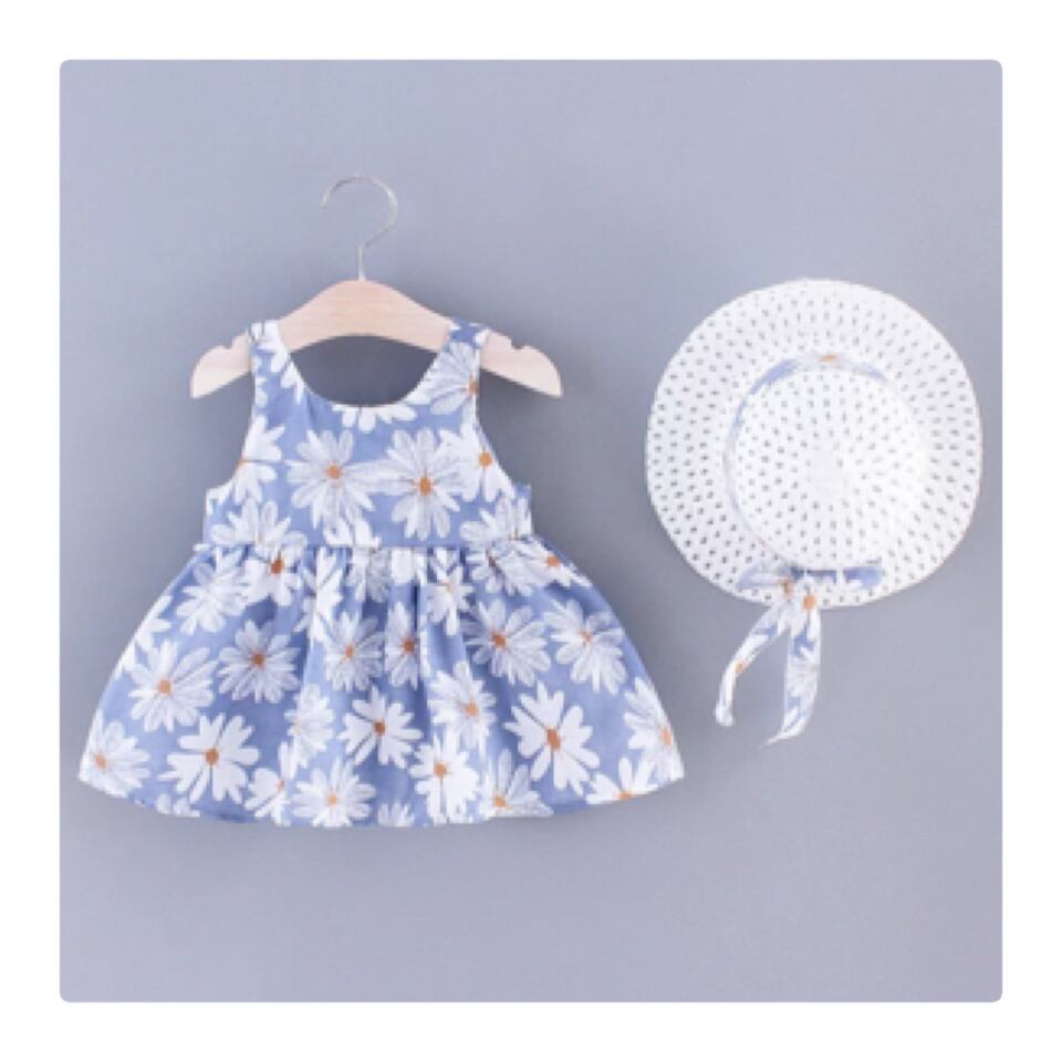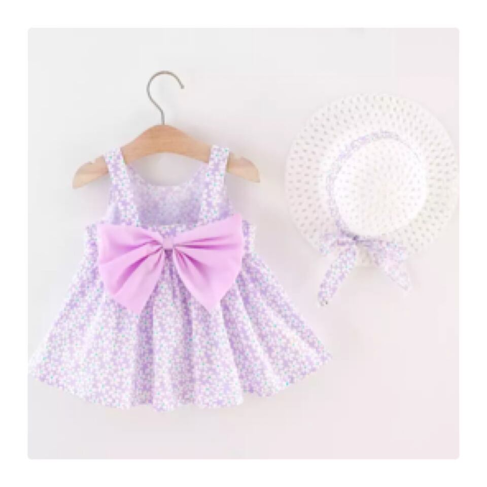 花柄ワンピースと帽子の可愛すぎる